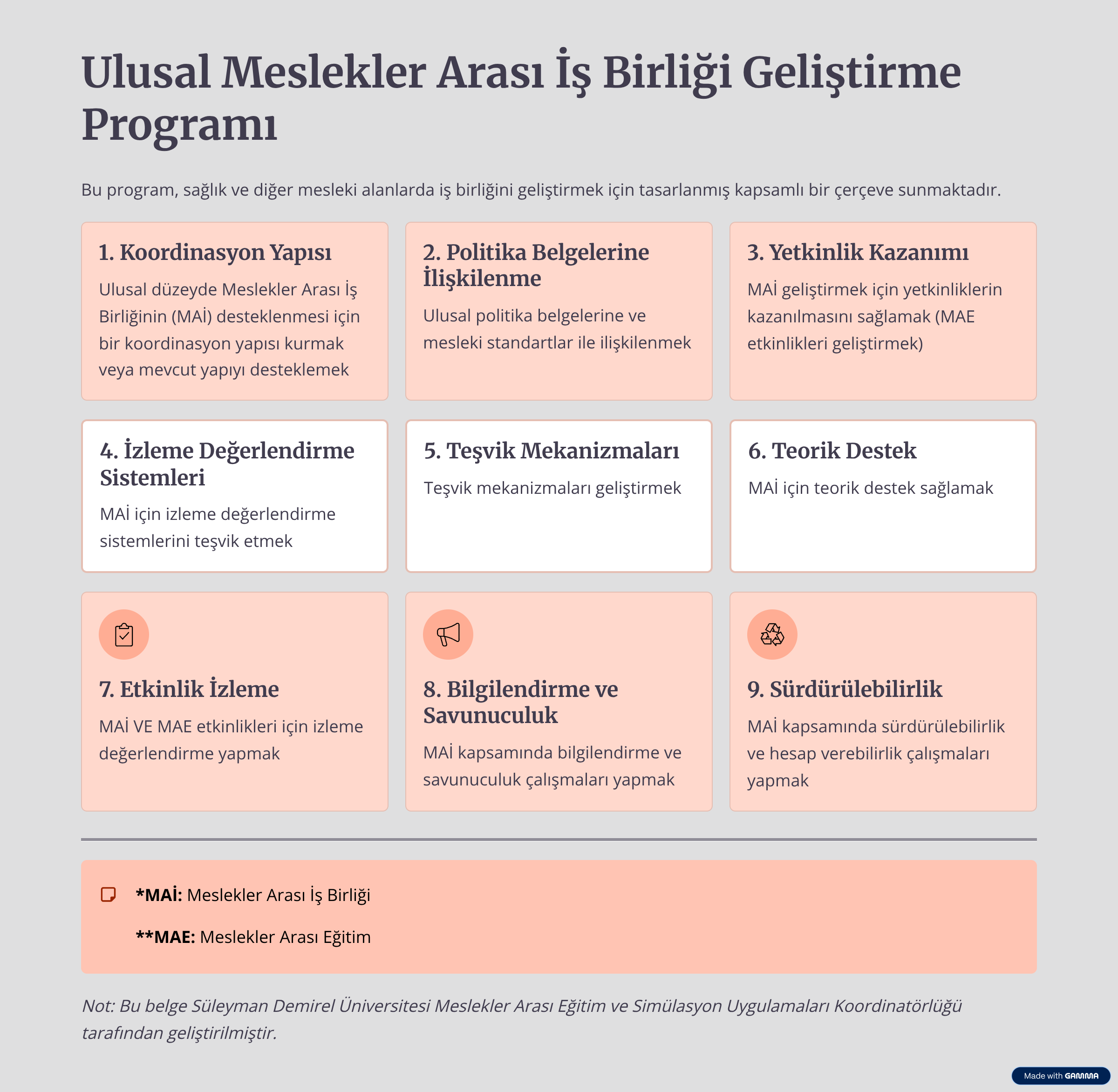 Ulusal Meslekler Arası İş Birliği Geliştirme Programı (9 Temel Sorumluluk)